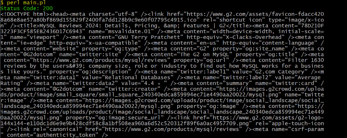 However, Perl has a limited ecosystem of scraping libraries and can be blocked by advanced anti-bot systems like G2, which use Cloudflare protection. You can overcome these challenges with Scrape.do, the best tool to scrape any website without getting blocked. Get started today with 1000 free credits.