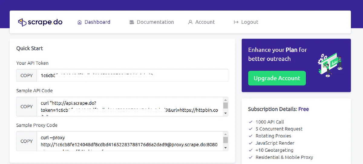 Great! With this token, you can make up to 1,000 API calls for free, with various features designed to help you avoid getting blocked.