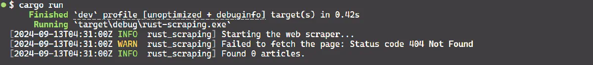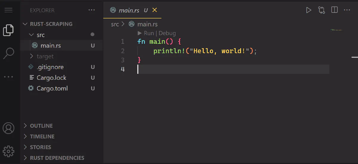 Great! Your Rust project is up and running. Now it's time to add web scraping functionality.