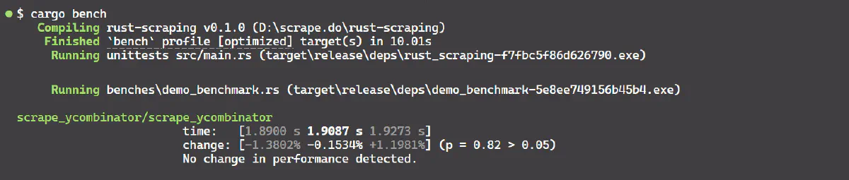 Finally, run this benchmark with cargo bench. You should see output similar to the following: