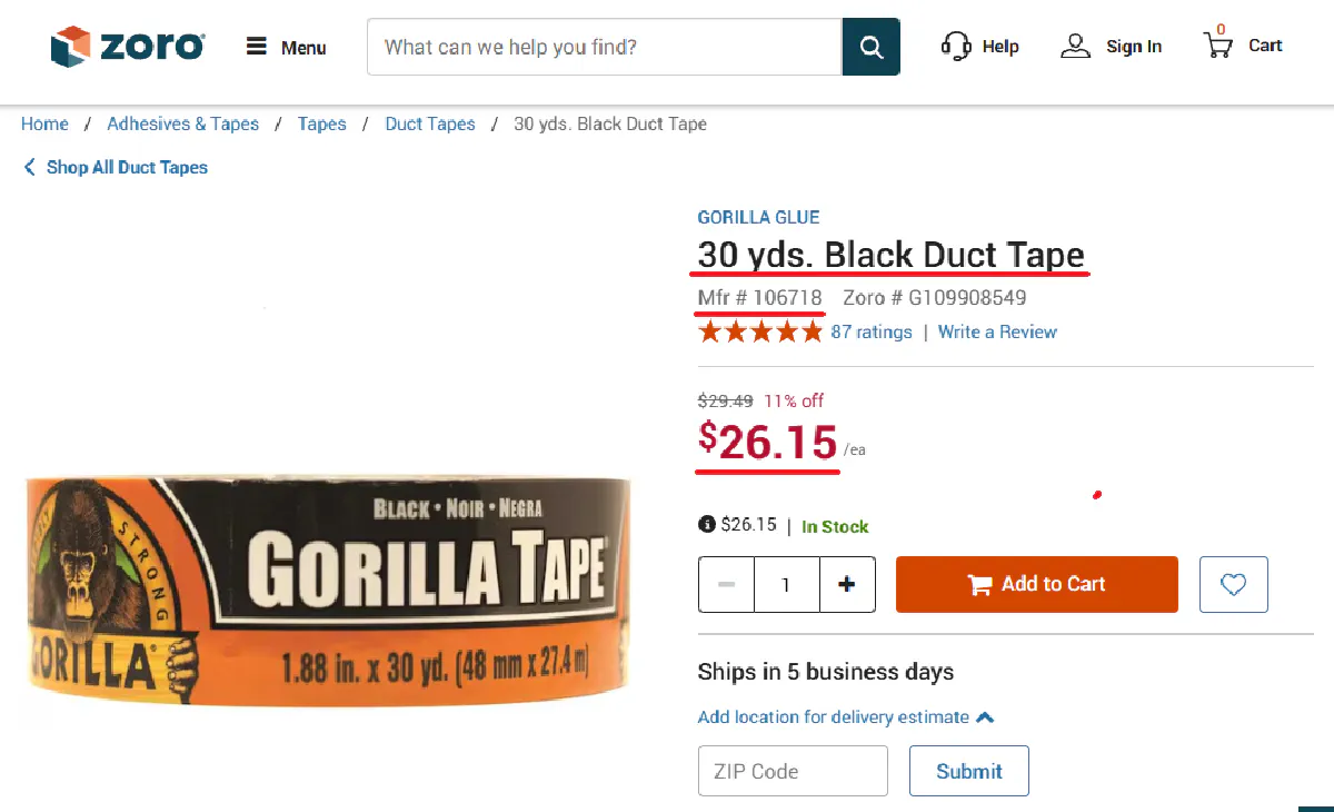 Let's try to scrape a product page from Zoro.com so I can show how easy it is.