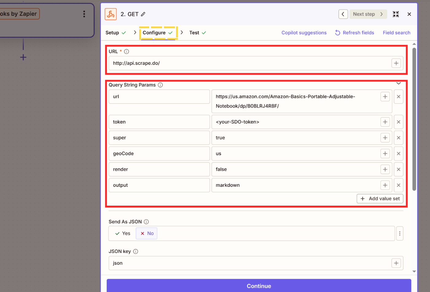 Now we'll configure the webhook to send scraping requests to Scrape.do.